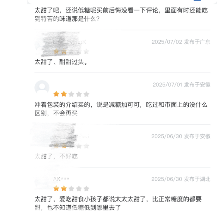在商品评论区,这款好丽友派有300多人打出了差评,有消费者称:“看到低糖才买的,但实际吃起来太甜。”